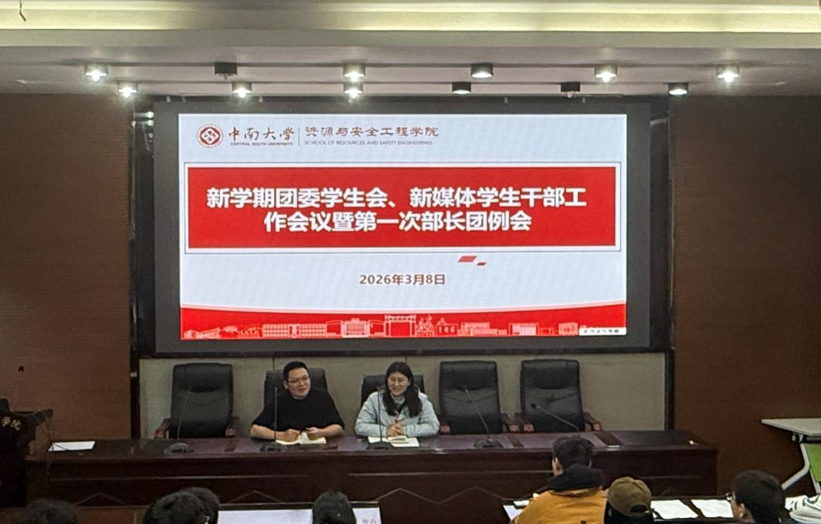 在采矿楼T302召开春季新学期团委学生会、新媒体学生干部工作会议。院团委书记丁德孝、副书记王子涵以及全体团学干部参会。