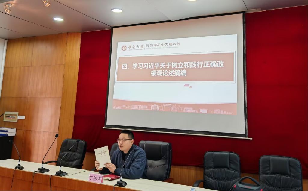 会议伊始,丁德孝老师带领大家学习《习近平关于树立和践行正确政绩观论述摘编》,引导团干部们正确理解青年学生的“政绩”所在,鼓励大家脚踏实地学好专业知识,在实践中锤炼本领,将个人成长与家国发展需求紧密结合。
