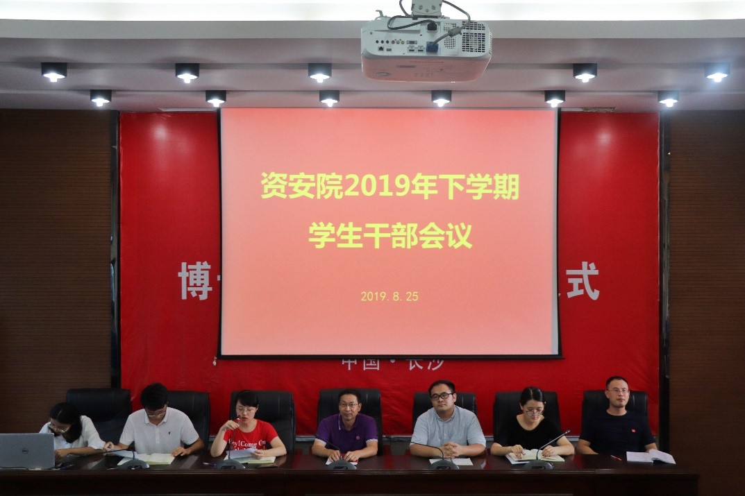 2019年下学期全体学生干部大会于采矿楼302会议室顺利召开。本次会议由院学办主任李欢老师主持,91大神