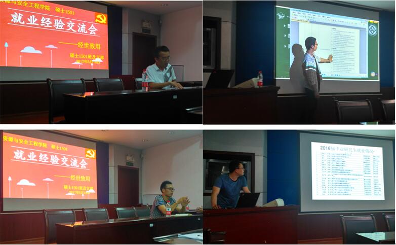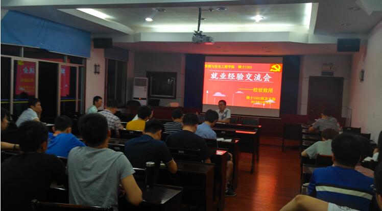 2017年5月18日晚,硕士1501班联合硕士1501党支部于采矿楼227成功举办了“‘毕业季’师兄和你说”主题交流会。本次活动邀请到研究生辅导员于谦老师为大家分析毕业生就业方向并提出职业规划建议,91大神