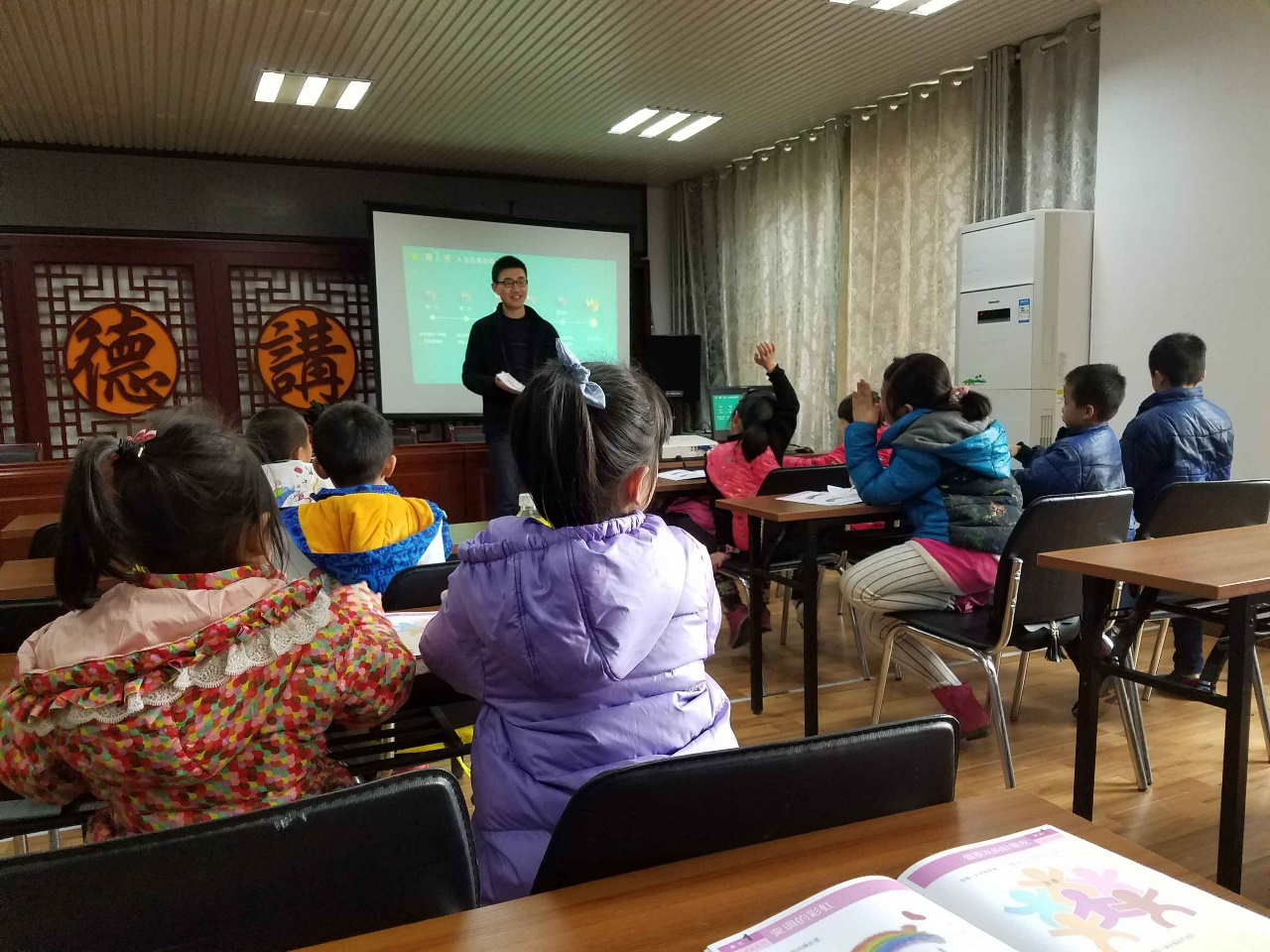在本次以“人生活在关系中”为题的课堂中,志愿者老师通过一个个小游戏、小故事教导儿童应该如何处理身边的人际关系,以及看待他人的正确态度。活动进行中课堂气氛活跃,孩子们对老师提出的每一个问题回答积极。课间的二十分钟内,孩子们更是纷纷拿起手中的绘本向老师展示上节课所要求完成的问题,也不乏有一些活泼的孩子和老师嬉戏打闹。志愿者表示,与孩子们融洽的关系让他们深感欣慰。