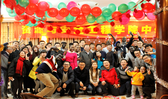 于采矿楼附一楼活动大厅举办了主题为“Happy New Year”的中外学生元旦联欢晚会,91大神